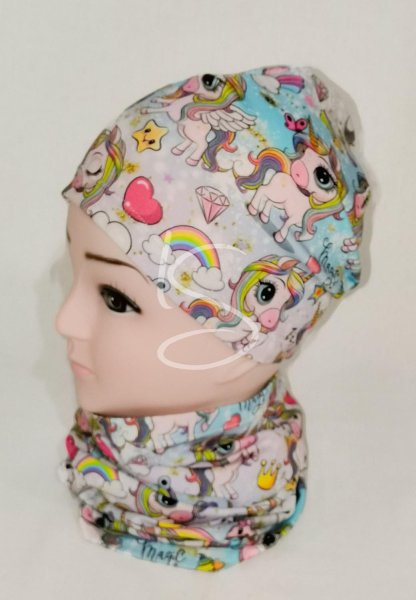 Čepice klasik s jednorožcem na tyrkysovo růžové