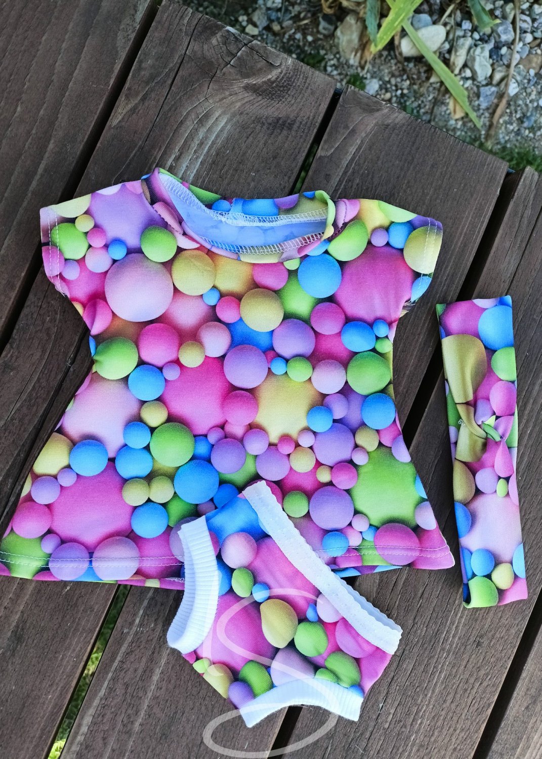 Barevné kuličky - set šaty, kalhotky, čelenka